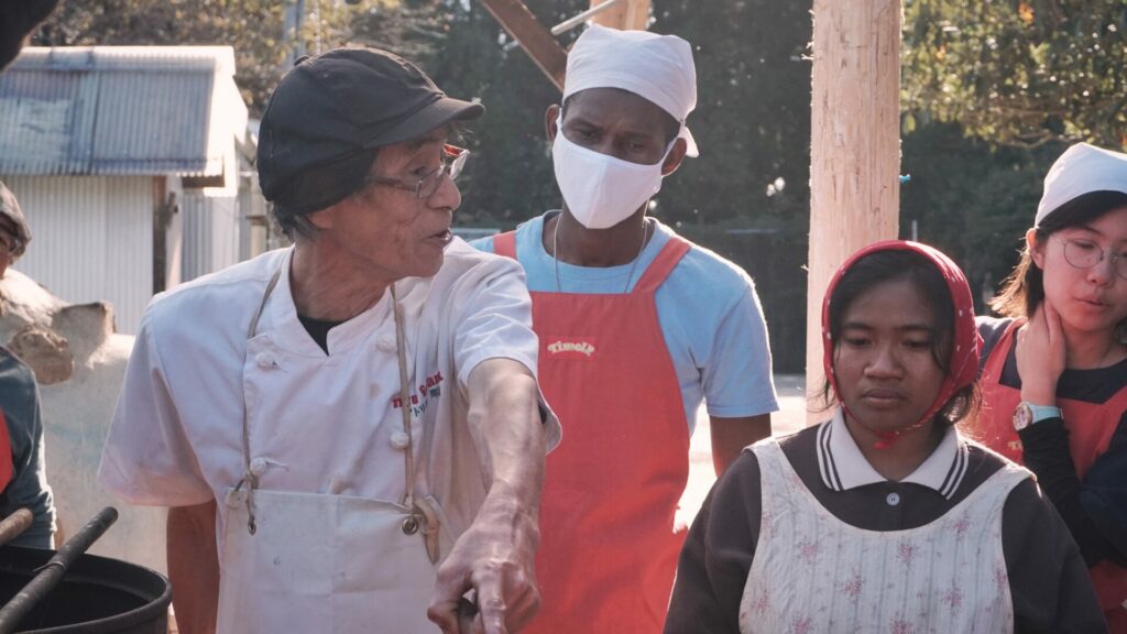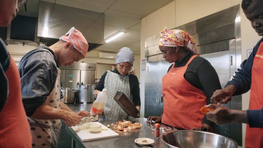晴天に恵まれた午後、学生たちは早速厨房に集まり、今日の授業を心待ちにしていました。小出さんは、調味料や材料が入ったボウルを前に、各アイテムの加工方法を説明し始めた。ニンニクやタマネギをみじん切りにし、様々な材料と調味料を混ぜ合わせます。