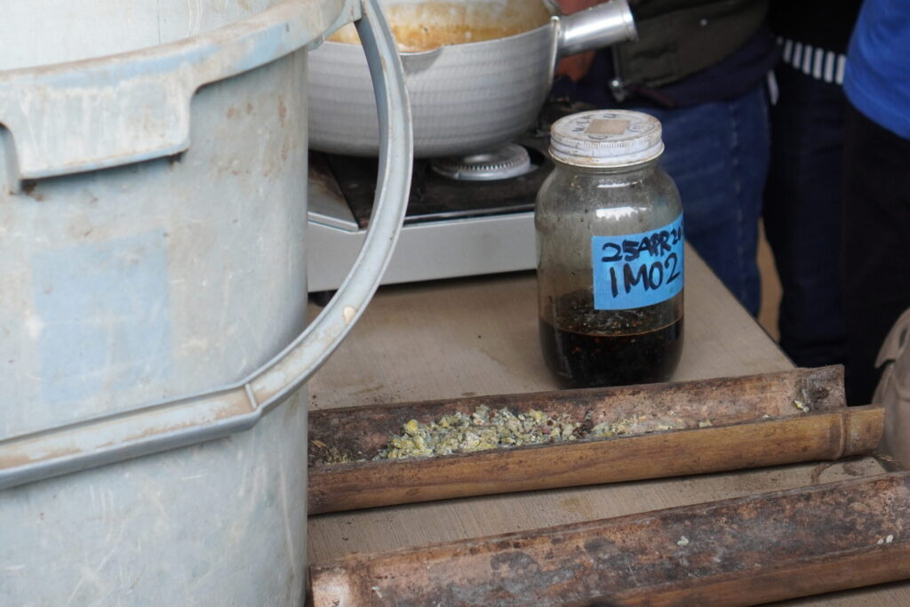 写真はIMO2作りの様子です。米を使って集めた微生物を、米粉と糖蜜に混ぜて増殖させ、より強く育てます。