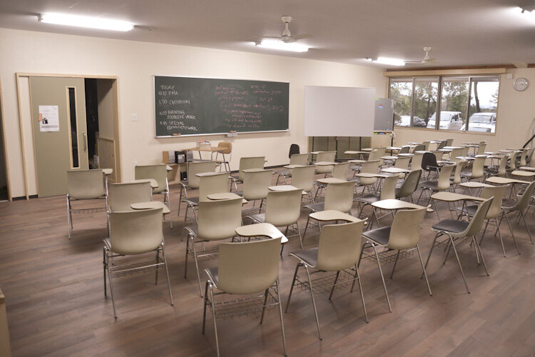学生はこの教室で授業を受けます。図書室には農業や社会問題をはじめさまざまな分野に関する英語・日本語の図書、視聴覚資料、雑誌があります。