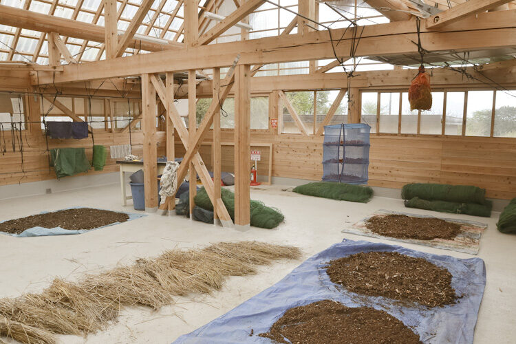 学院の農作業の中心であり、教室や農具・農業資材置き場を備えています。作物の乾燥保管も行います。