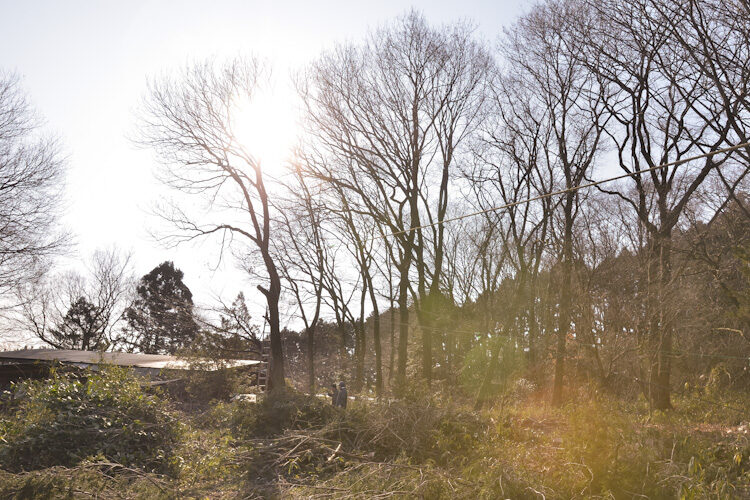 キャンパス周辺の森林では薪や木炭用に間伐を行い、農業に使う落葉等の有機資材を集めます。