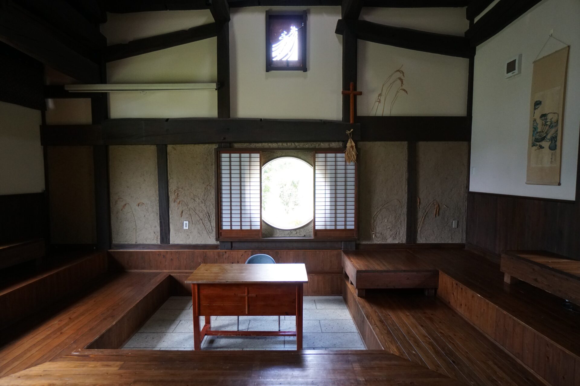 100年前の農家の古民家を改装した礼拝堂です。毎日の朝の集会はここで行われます。その他黙想や対話、ゴスペルクワイヤの練習等に使われ、コミュニティに開かれた空間です。オイコスとはギリシア語で「ホーム」を意味します。