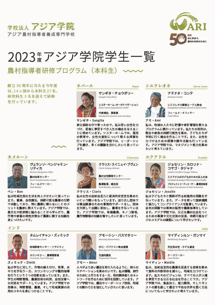 〜農村リーダーにおけるアジア学院の研修効果に関する調査~英語 / 日本語