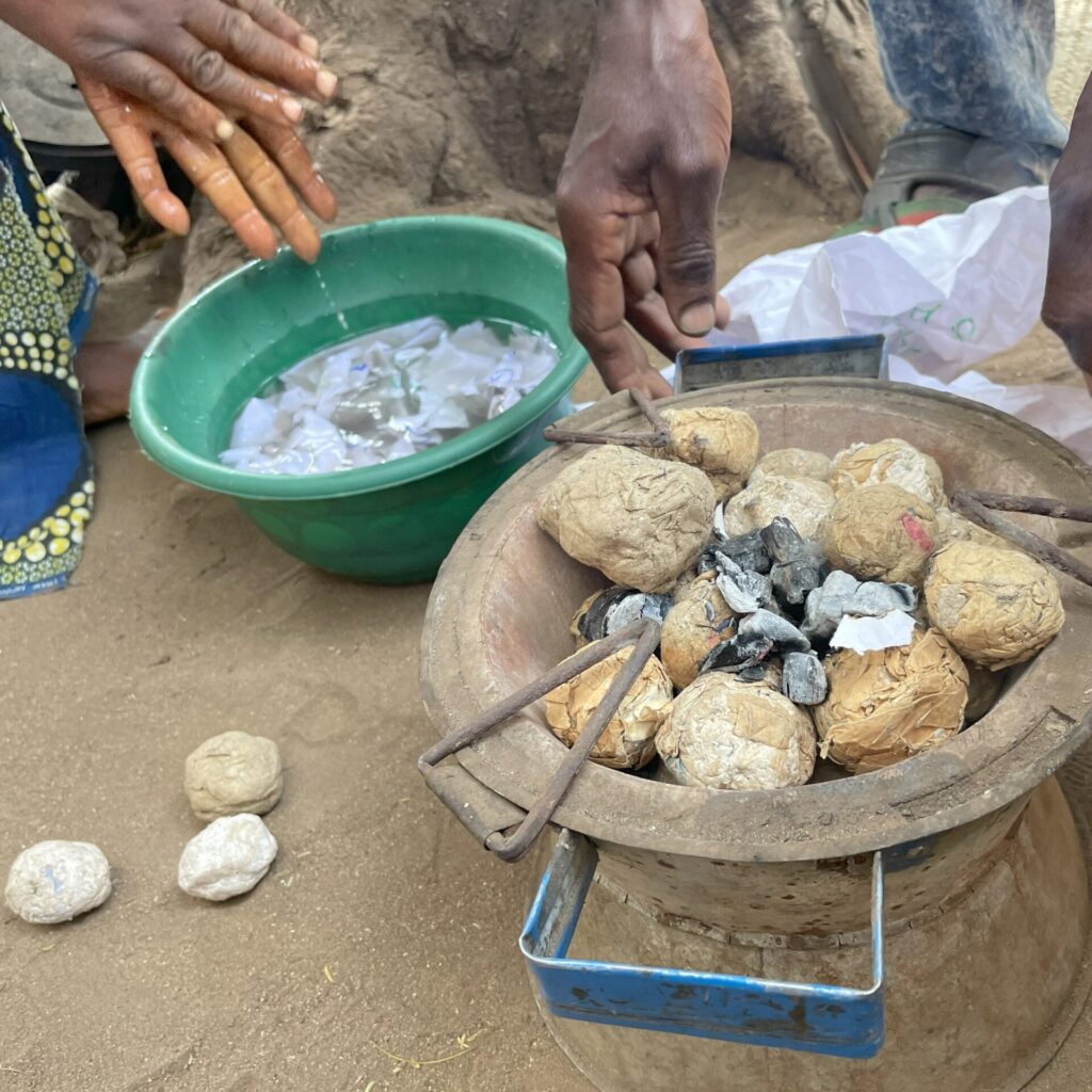 One thing I found very interesting were the “brickettes.” These are just paper that has been wadded into balls, soaked in water, and dried. Used in place of charcoal, one pot can burn for an hour, and to prove this, they cooked sweet potatoes during the meeting. They get the wastepaper from the school mainly. The sweet potatoes were soft and sweet, but too many for me, so I tried to share them with the kids. Some rejected them and a few took them. One boy said to the others, “why do you take the food we eat every day, just because it is given by a visitor?” This showed me that these kids are not hungry, and things are going well in this village, but I’m sure they were hoping for some candies. Those paper brickettes may not be a long-term solution, but they were the first practical attempt I saw to stop charcoal usage!