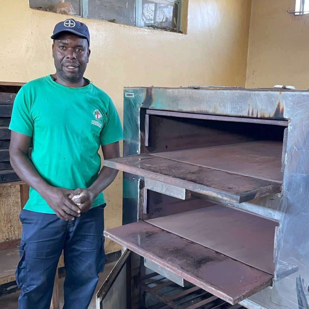As you would expect, the college provides training in livestock and horticulture, but our first stop was a bakery. Normally, there would be wonderful smells coming from the ovens and beautiful loaves of white bread and rose buns filling up the tray racks, but… Yes, the electricity problem has come again. Since the power can go off at any time, they can’t bake. This affects not only the curriculum, but also the ability to bring income to the school through bread sales.