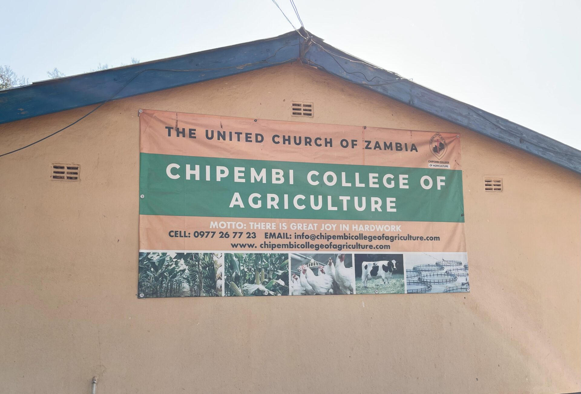 As you can see in the sign, it is officially the Chipembi College of Agriculture, established by the United Church of Zambia. Its first intake of just six students was in 1964. Currently they have 161 students, 80 women and 81 men, and of those, five are with disabilities. Following the college’s inclusivity policy, those five students are fully integrated into the regular curriculum.