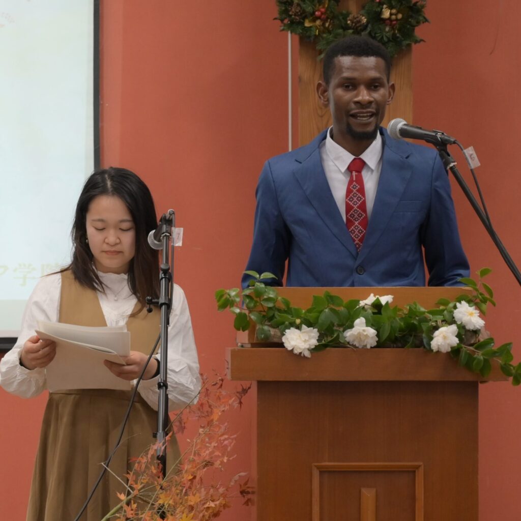 [Pierre, 2023 graduate from Republic of Haiti and Tomoko Oka (Haiti no Kai)]