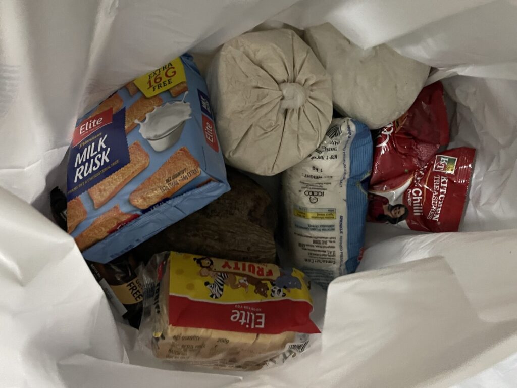 At the conclusion of today’s gathering, each family collected their bags, one by one. Often the hands of two people were required to carry them. Though the sacks were heavy, the weight of worry about what to eat the next several days had been lifted. Everyone continued to chat and laugh all the way out to the street, where some of them went home on foot, and some shared a minicab. Later, Thomas Mathew personally delivered one of the food bundles to a blind lady who was not able to come.