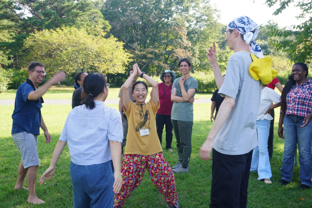 お昼からは近くの公園でコミュニティイベントを行い、グループに分かれて、音楽や詩、ダンス、演劇で平和を表現したり、ゲームを通して相互理解と親睦を深めました。