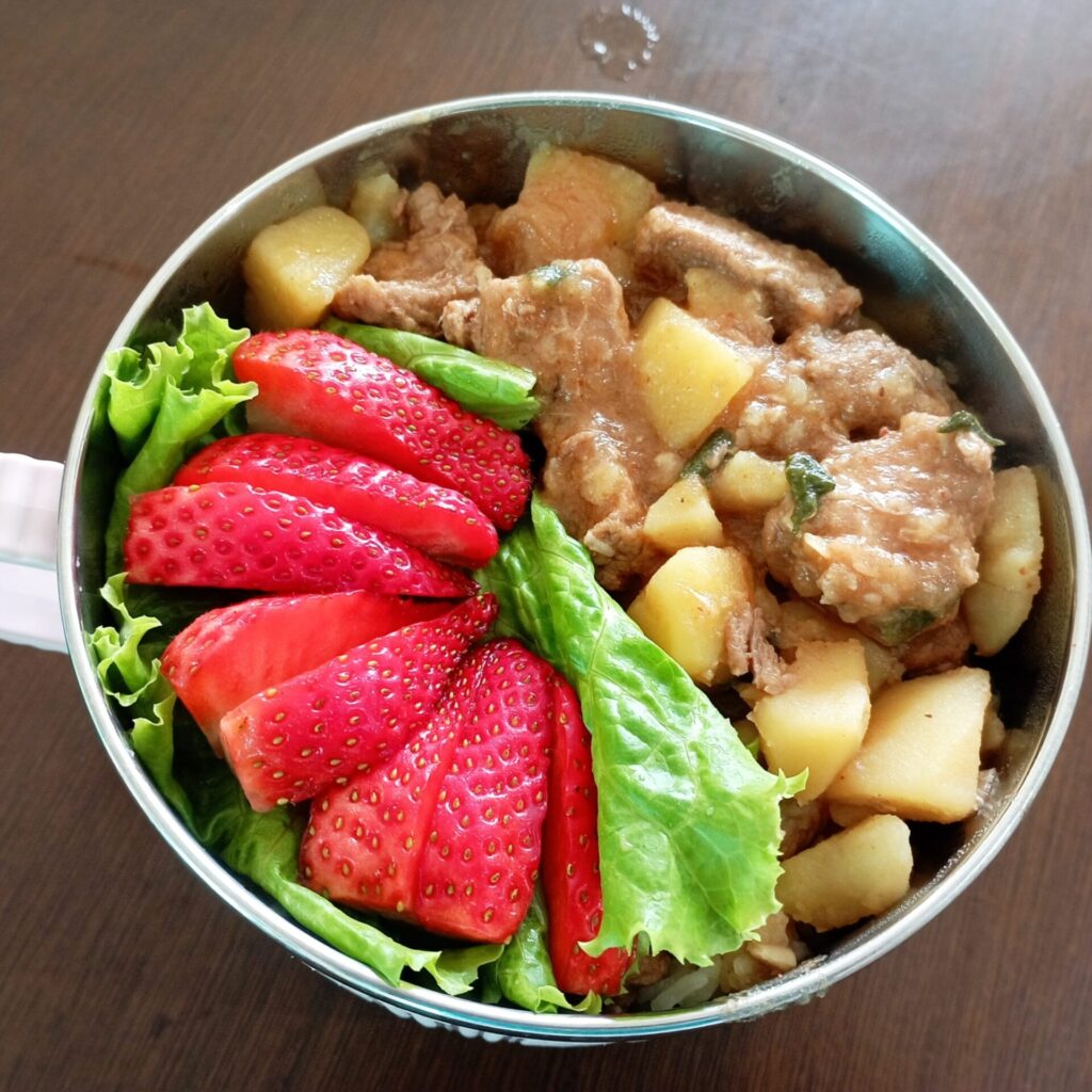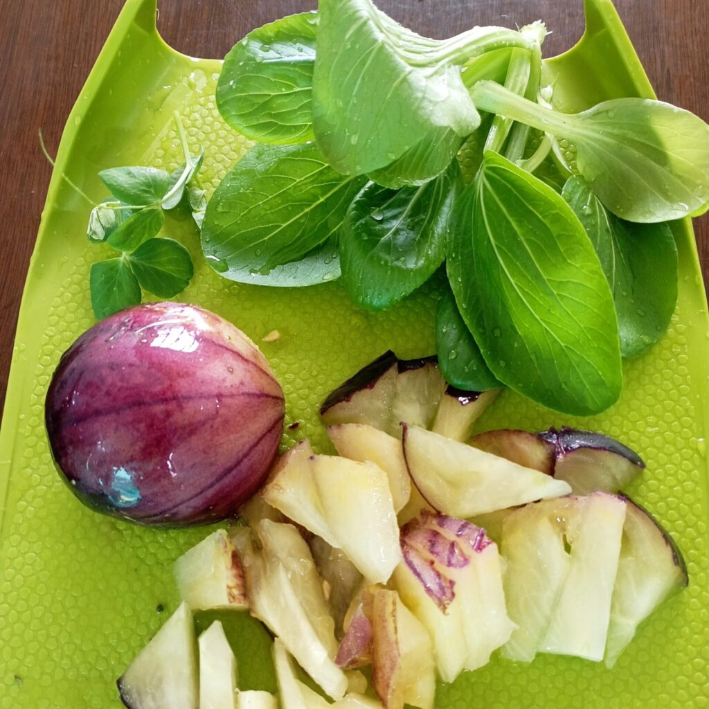 長年、アジア学院のキッチンで学生の胃袋を満たしてきた彼女は、栄養と健康に深く関心を持ち、近年、ナガランドでも、がんや糖尿病患者が急増していることを憂いている(世界の食のトレンドが急激に変化する中、ナガランドも例外ではない。農村部でも都市部でも、若い世代の間では、州外からのファストフードが流行している)。そこで、都会の地域でも、家計と家族、近隣の人々の健康を支えることを目的として、日本食を参考にしたヘルシーなお弁当作りを広めることを思いついた。若い人が魅力を感じることをしなくてはならないと話す彼女は、250-300円ほどで、毎日、近所の3人にお弁当を作っているという。お米は村から、キャベツやナス、トマト、イチゴは彼女のベランダや屋上の小さなプランターで育ったものだ。ウサギ2匹に加えて、つい最近、卵のために雌鶏も3匹飼い始めた。「本当に少しの食材があれば良いんです。」