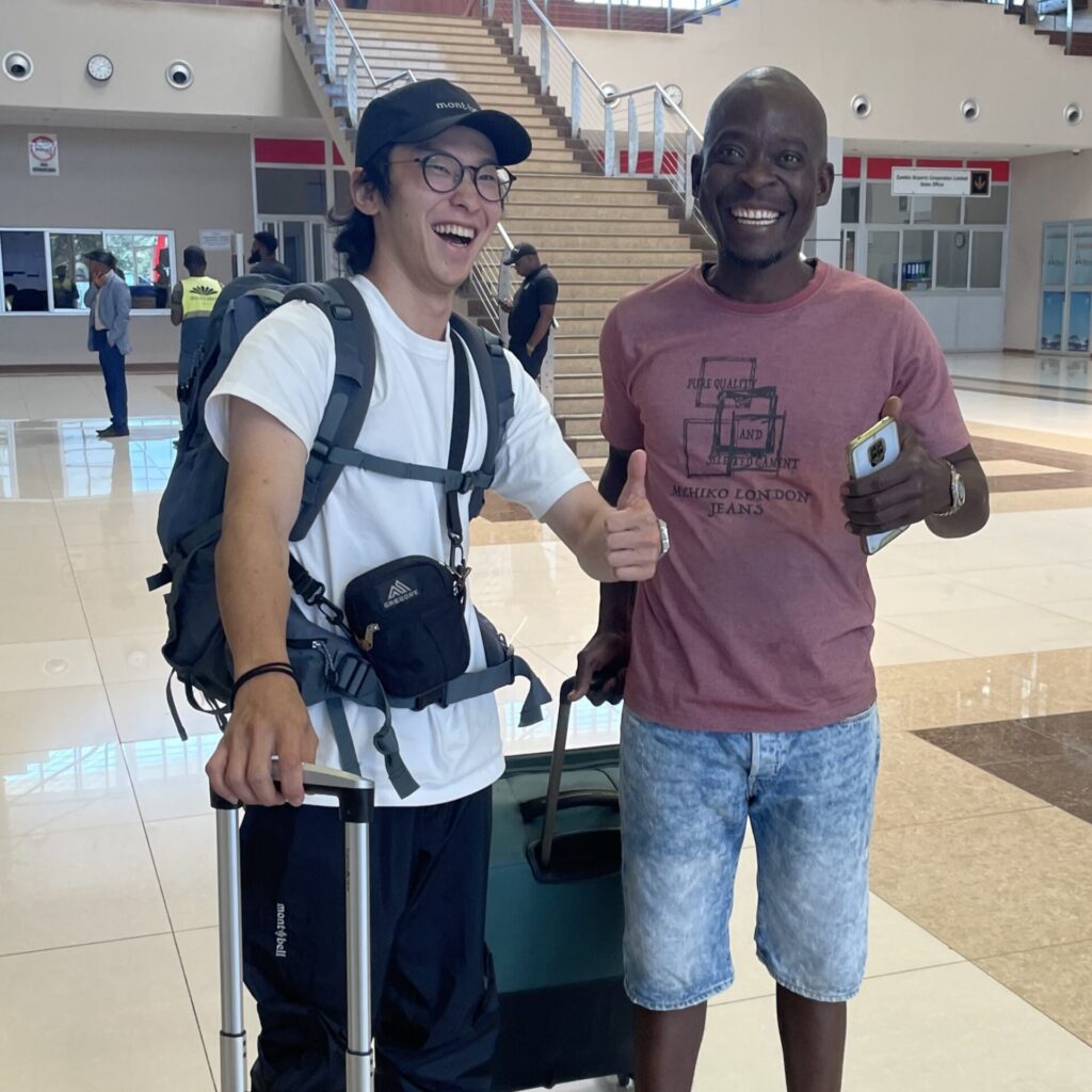 ザンビアの空港にて 久しぶりの再会を果たした卒業生と共に