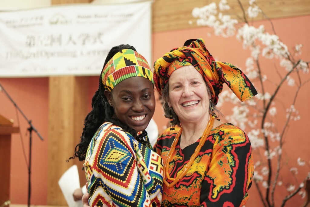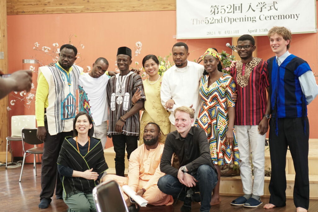 4月13日(土)、入学式が行われました。満開の桜の中、終始、集った皆さまの笑顔があふれる穏やかな式となりました。学生たちは昨日まで練習してきた日本語の自己紹介をみごとにやりとげました。お集まりいただいた皆さま、メッセージを寄せてくださった卒業生の皆さま、遠くから応援してくださった皆さまに心より感謝いたします。